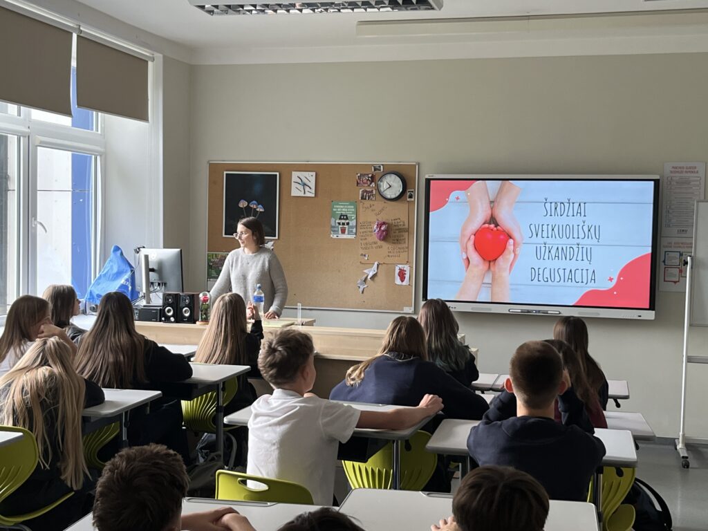 Edukacijos metu taip pat vyko smagus žinių žaidimas „Tiesa ar melas“, padėjęs pasitikrinti, ką mokiniai įsiminė apie širdį, kraujagysles ir sveiką mitybą. Renginio akcentu tapo degustacinės salelės „Širdžiai draugiški užkandžiai“, kur vaikai ragavo šviežių daržovių juosteles su jogurtiniu padažu ir aptarė, kaip tokie užkandžiai prisideda prie širdies sveikatos.