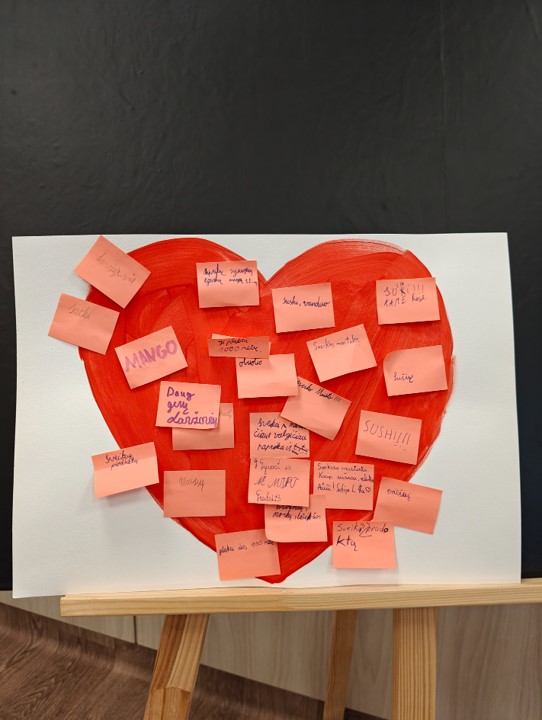 Praktinėje dalyje vaikai matavosi pulsą ramybės būsenoje ir po judesio – taip jie praktiškai pamatė, kaip fizinis aktyvumas veikia širdies darbą. Kitoje užduotyje mokiniai analizavo skirtingų produktų etiketes, lygino cukraus, druskos ir riebalų kiekius, o grupėse kūrė plakatus „Pažadas savo širdžiai“, į kuriuos įtraukė širdžiai draugiškus produktus ir sveikus įpročius.