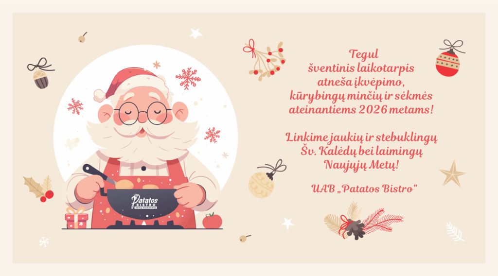 Artėjant gražiausioms metų šventėms, UAB „Patatos bistro“ kolektyvas nori padėkoti visiems savo klientams ir partneriams už dar vienus sėkmingo bendradarbiavimo metus.